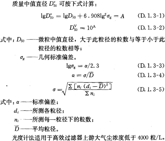 D.1.3 光度計(jì)法可用于最大穿透率大于等于0.001%的過(guò)濾器檢漏,應(yīng)采用多分散的檢漏氣溶膠,其質(zhì)量中值直徑為0.5μm~0.7μm,幾何標(biāo)準(zhǔn)偏差約為1.7。