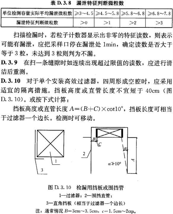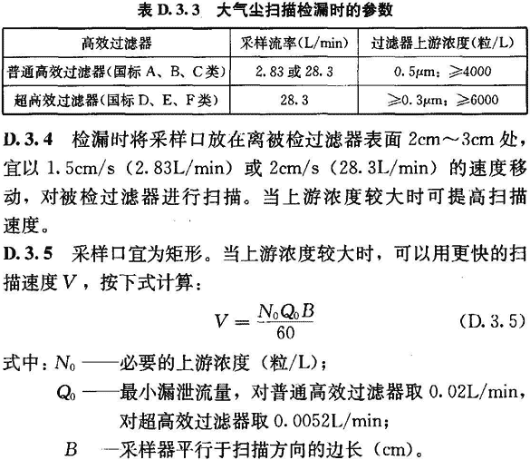 D.3.7 掃描檢漏時(shí)應(yīng)拆去高效過(guò)濾器外的孔板或裝飾層,掃描面積應(yīng)稍有搭接。