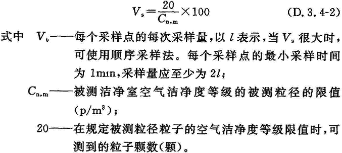 D.4.1 潔凈廠房性能測試認證前,應由業(yè)主與認證單位簽訂協(xié)議書,協(xié)議書中應明確檢測項目、測點位置及數(shù)量、測量要求和限值等,如測量空氣懸浮粒子濃度采樣點數(shù)、每次最少的空氣采樣量、采樣時間、每個采樣點的測量次數(shù)、測量時間間隔、被計數(shù)粒子的粒徑,以及粒子數(shù)的限值等。