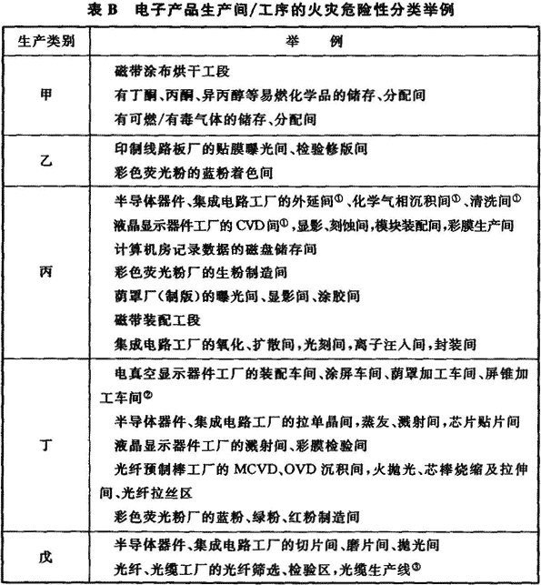 附錄B 電子產(chǎn)品生產(chǎn)間/工序的火災(zāi)危險(xiǎn)性分類舉例