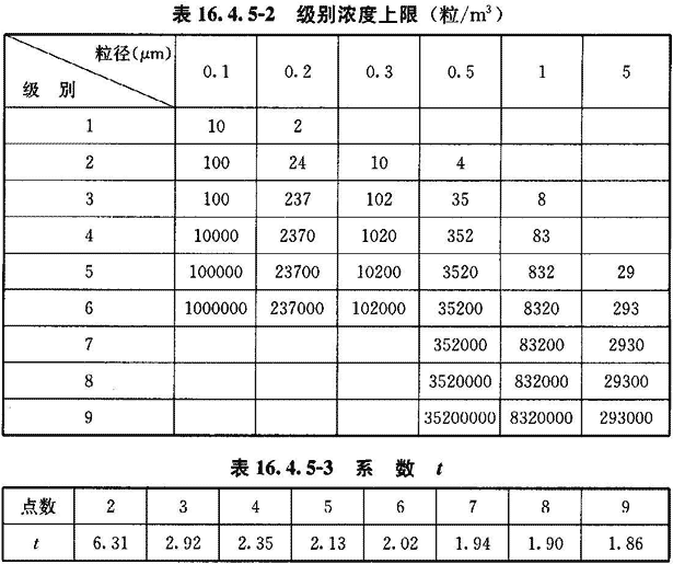 16.4.5 空氣潔凈度級(jí)別應(yīng)按附錄E檢驗(yàn)微粒計(jì)數(shù)濃度,然后按以下程序計(jì)算出空氣潔凈度級(jí)別并評(píng)價(jià)。