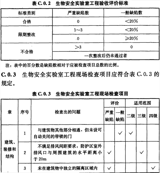 C.0.2 生物安全實驗室工程驗收評價標(biāo)準(zhǔn)應(yīng)符合表C.0.2的規(guī)定。