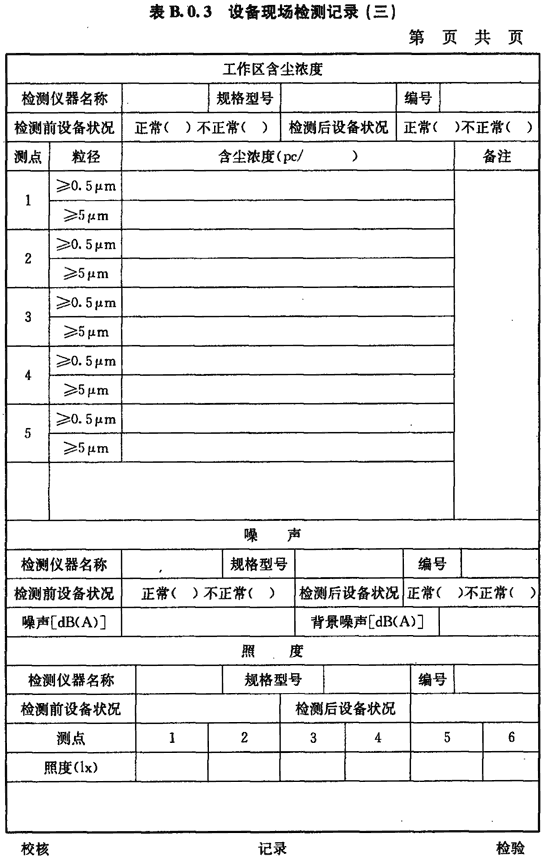 B.0.3 工作區(qū)含塵濃度、噪聲、照度的檢測應按表B.0.3進行記錄。