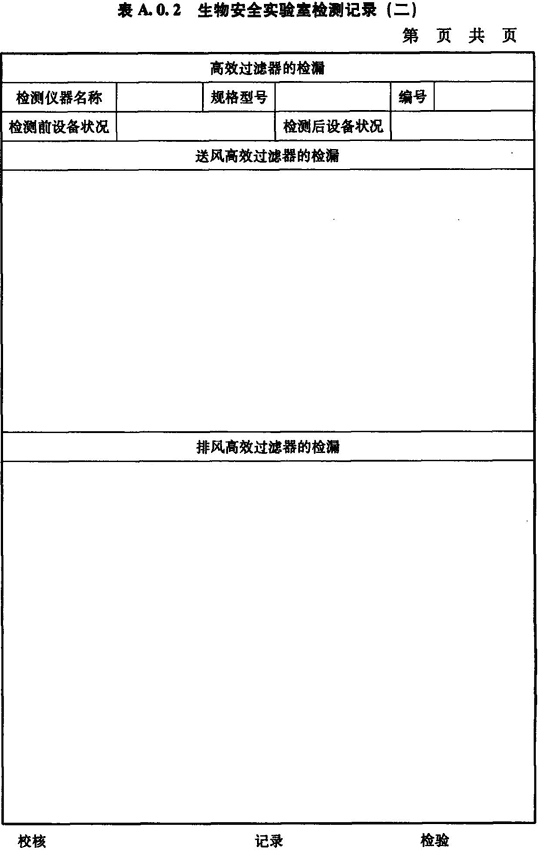 A.0.2 生物安全實驗室送風(fēng)、排風(fēng)高效過濾器檢漏情況應(yīng)按表A.0.2進(jìn)行記錄。