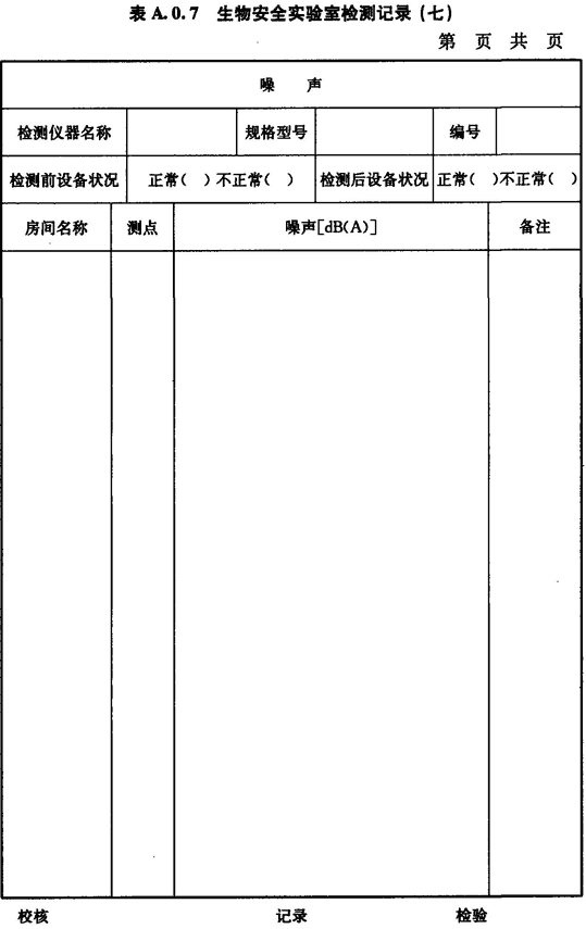 A.0.7 生物安全實驗室房間噪聲的檢測應(yīng)按表A.0.7進(jìn)行記錄。