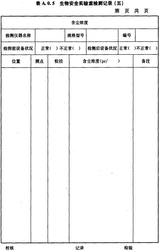 A.0.5.生物安全實驗室房間含塵濃度的檢測應(yīng)按表A.0.5進(jìn)行記錄。