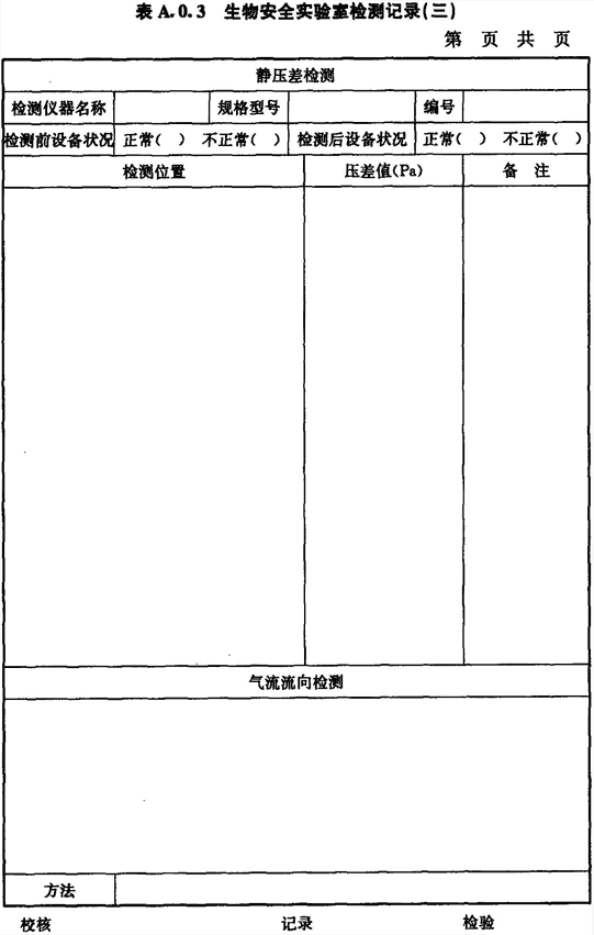 A.0.3 生物安全實驗室房間靜壓差和氣流流向的檢測應(yīng)按表A.0.3進(jìn)行記錄。