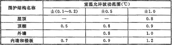 注:表中內(nèi)墻和樓板的相關數(shù)值僅適用于相鄰空氣調(diào)節(jié)區(qū)的溫差大于3℃時。