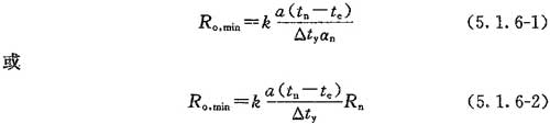 5.1.6 除外窗、陽(yáng)臺(tái)門(mén)和天窗外,設(shè)置全面供暖的建筑物,其圍護(hù)結(jié)構(gòu)的最小傳熱阻不得小于按下列公式計(jì)算所得值: