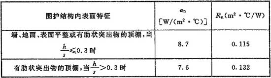 αn——圍護(hù)結(jié)構(gòu)內(nèi)表面換熱系數(shù)[W/(m2·℃)],按本規(guī)范表5.1.6-5采用;