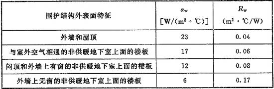 表5.2.4-1 外表面換熱系數(shù)αw和換熱阻Rw值