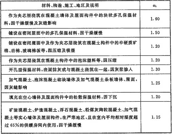 表5.2.4-2 材料導(dǎo)熱系數(shù)的修正系數(shù)αλ