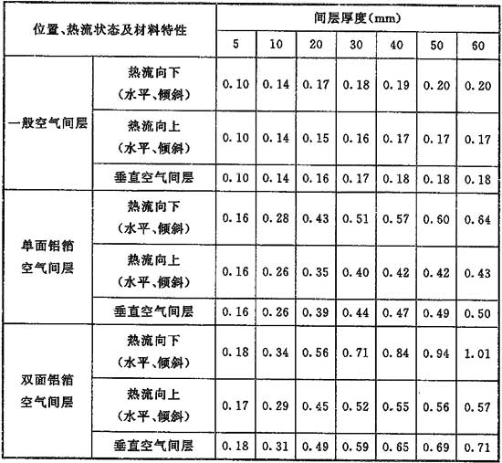 表5.2.4-3 封閉的空氣間層熱阻值Rk(m2·℃/W)