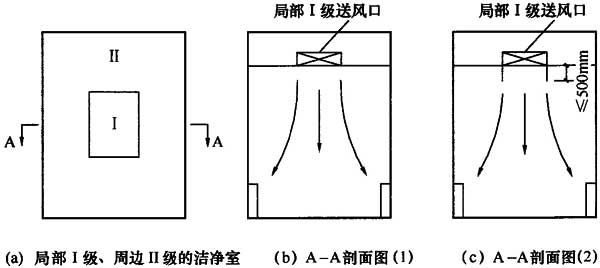 時,背景環(huán)境可不另設(shè)送風口。這一方法已被現(xiàn)行國家標準《醫(yī)院潔凈手術(shù)部建筑技術(shù)規(guī)范》GB 50333所采用,也被俄羅斯醫(yī)院標準所采用。需要注意的是本條款不適用于自循環(huán)的送風末端(如FFU、層流罩等),當局部Ⅰ級采用自循環(huán)的送風末端時,背景環(huán)境宜另設(shè)送風口。